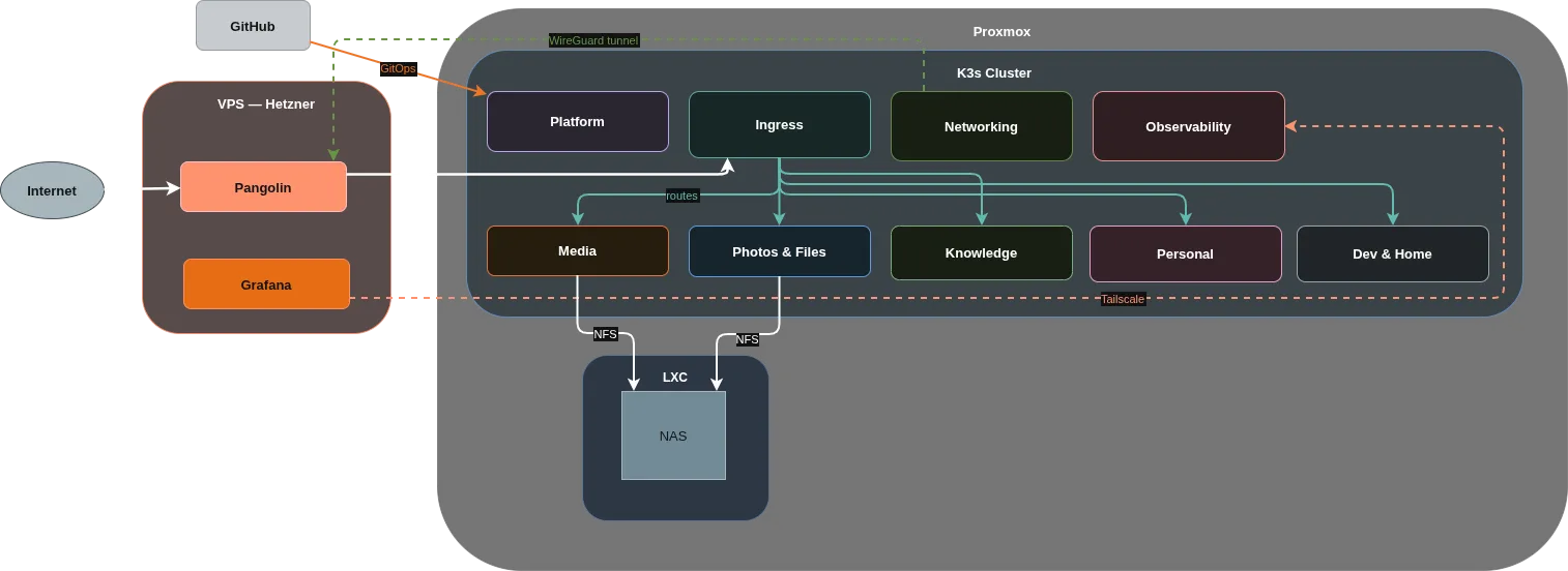 I expected cleaner operations and better reliability, but the main positive point is that Kubernetes forces you to understand it because there’s not really a way to overpower your way through a broken IngressRoute or a pod that can’t pull its secrets. I had to figure out service discovery and ingress rules and secrets injection from scratch, reading events and docs and occasionally very long GitHub issues.